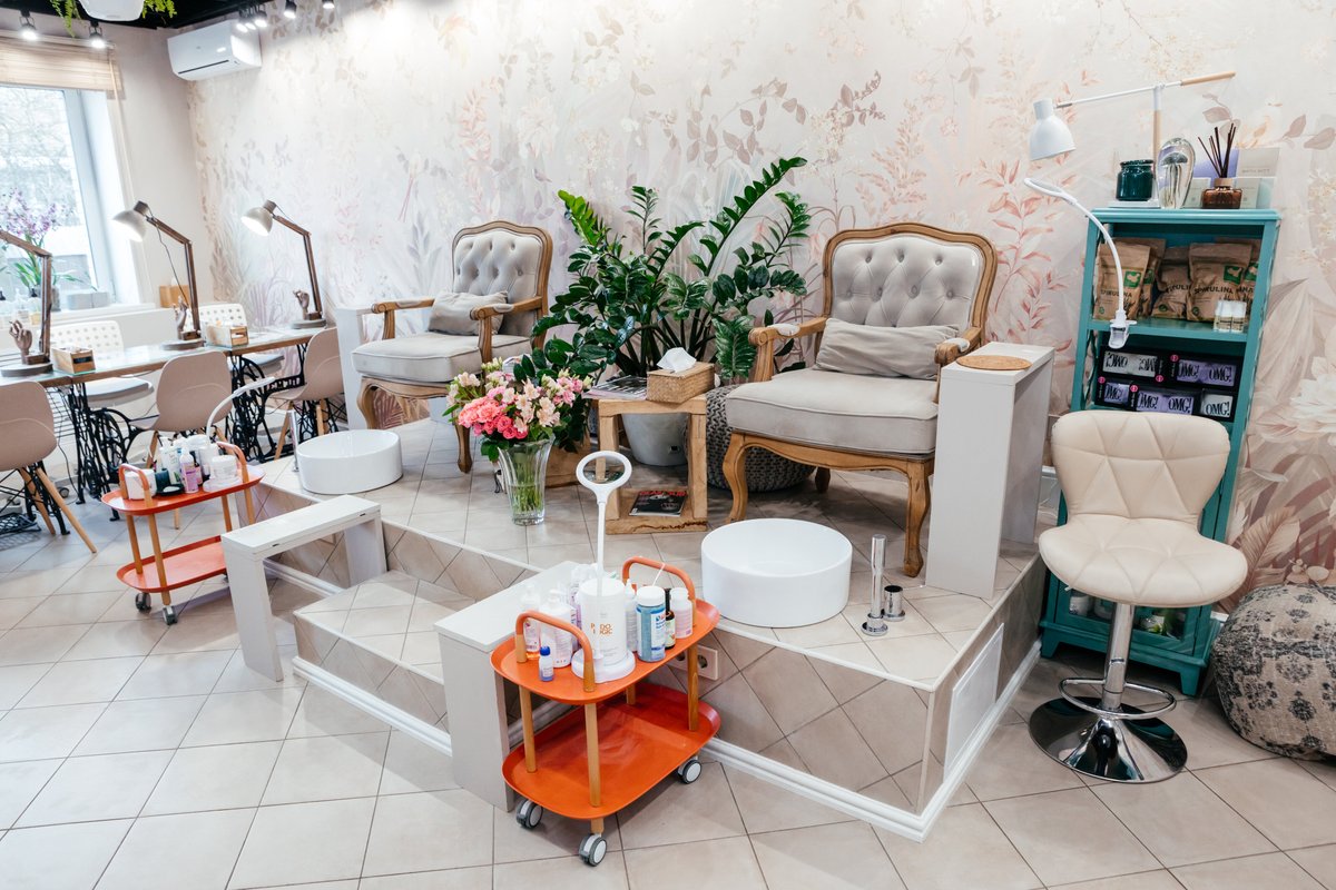 Идеальный маникюр и интерьер, который дополняет впечатления блаженственности и релакса… Спа педикюр в теплых носочках- особенное удовольствие.